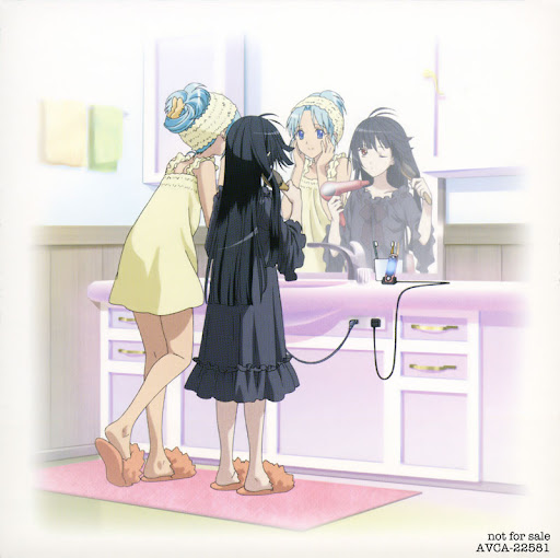 還有值得一提的是畫風與動畫完全不同的片尾曲設計。剛剛說過了片尾曲「Devotion」相當的不錯(也是才發第二張單曲的新人喔~),雖然看起來是用了原畫集中的幾張圖片拉出來做,但是我覺得能夠展現完全不同風格的恩田赤,對於fans來說應該也是很不錯的作法。(嗯,雖然就某些方面而言根本就是遊走尺度邊緣的暴露……)既然提到了片尾曲的動畫,當然也順便提一下片頭曲的動畫;在看DVD的時候通常都會在看過一兩次片頭曲之後每集每集都跳過、跳過,可是這次在動畫中每集片頭曲的動畫都有點點不一樣喲!所以還是可以稍微仔細的看一下的。然後有個比較莫名的地方就是,發行DVD-BOX時在原本的第07與08集中間插入了新的一集,不過對於之後的集數卻完全沒有影響,這點是比較可惜的;我想是因為要讓另外一位女配角田中稍微增加一點出場時間吧?不然她好像只有第一集跟片頭曲有出現而已。